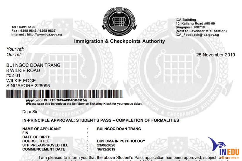 Visa du học Singapore của học sinh Phạm Văn Toàn - Trường PSB