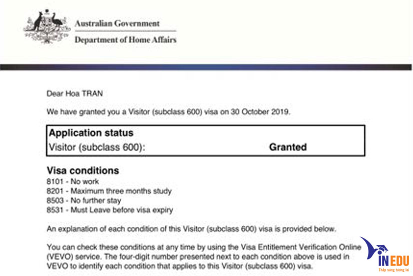 Chúc mừng khách hàng Trần Hòa nhận được visa du lịch Úc