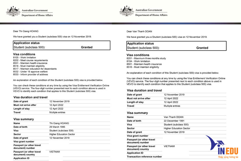 Visa du học thạc sĩ Úc của Hoàng Thị Giang và chồng Đoàn Văn Thành