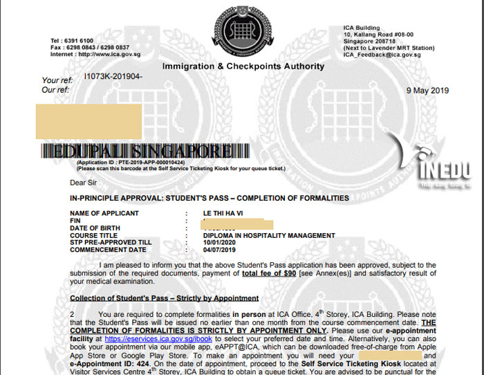 Lê Thị Hà Vy đỗ visa du học Singapore