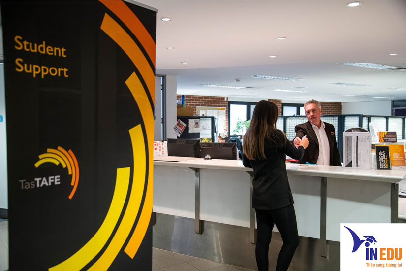 - Các Giáo viên hỗ trợ tiếng Anh của TasTAFE sẽ trợ giúp các bạn sinh viên quốc tế như như đưa đón sân bay, tìm chỗ ở, hỗ trợ tìm việc làm.
